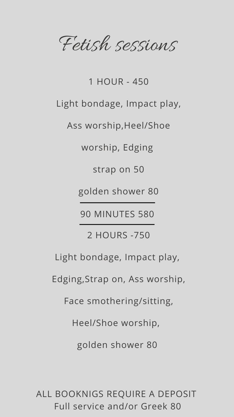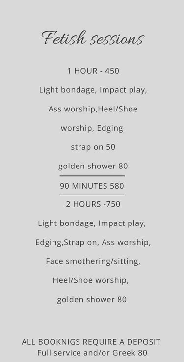 a minimum of 5 hours notice is required for ALL sessions, along with screening and deposit. incall or outcall. other services available upon request.