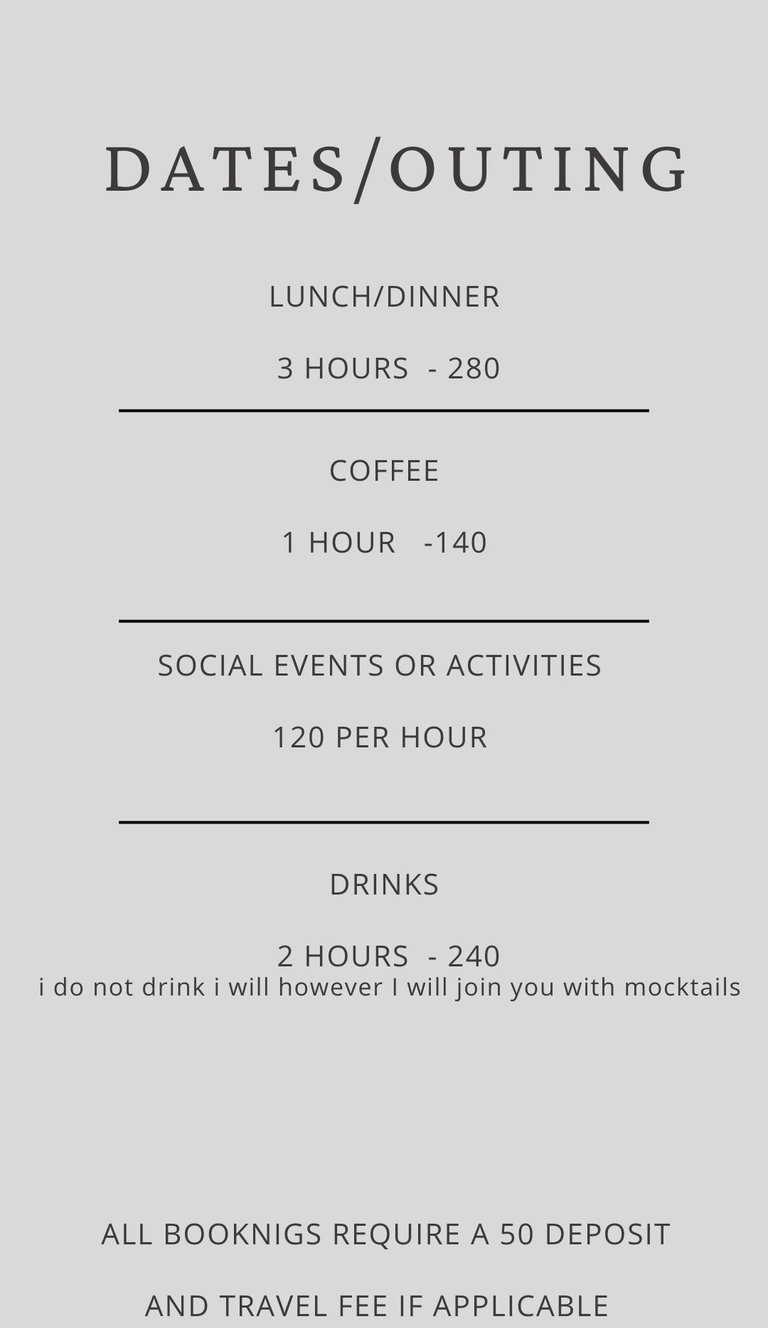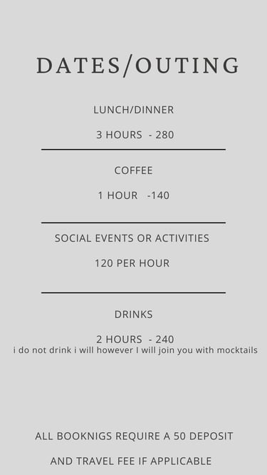 a minimum of 5 hours notice is required for ALL sessions/dates. along with screening and. deposit plus travel fee if needed